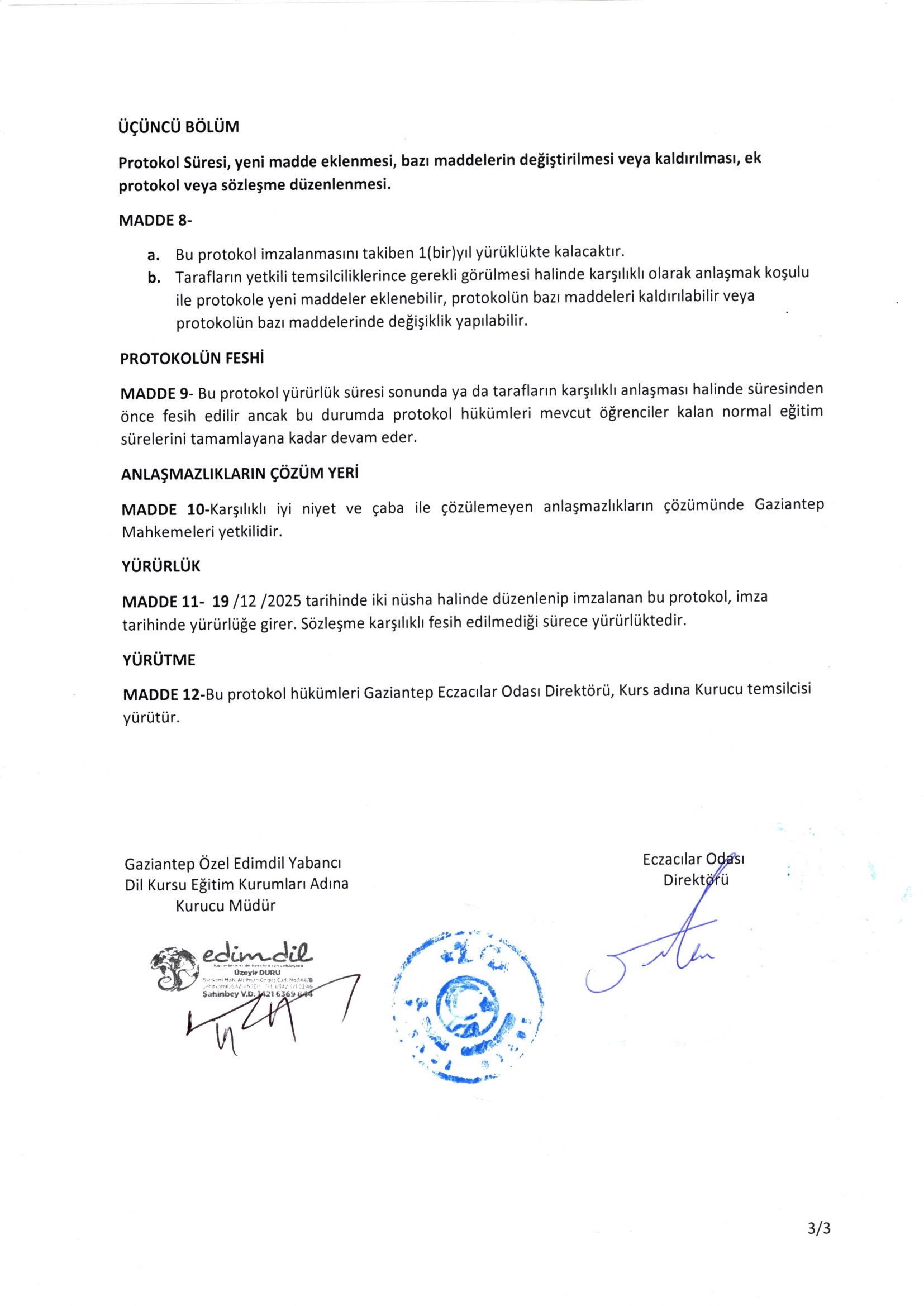 EĞİTİM - EDİMDİL YABANCI DİL KURSU EĞİTİM KURUMLARI İNDİRİM PROTOKOLÜ HK.