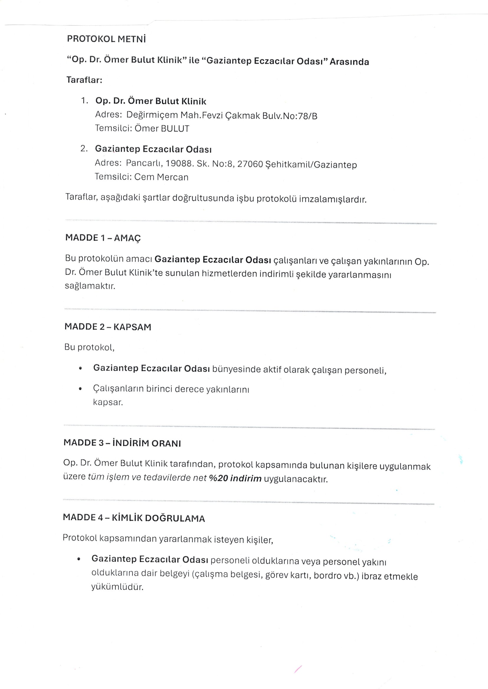 SAĞLIK - Op.Dr.Ömer Bulut Klinik Estetik ve Plastik Cerrahi İndirim Protokolü Hk.